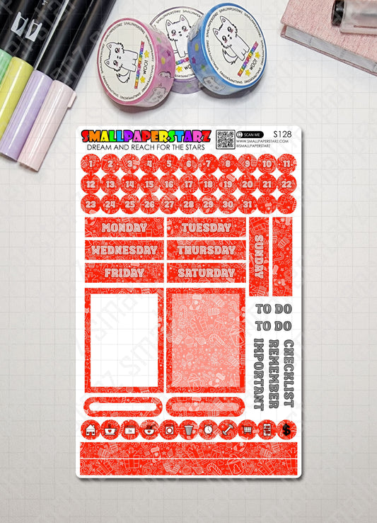 S128 - Christmas Holidays Red Monthly Planner Kit Functional Sticker Sheet
