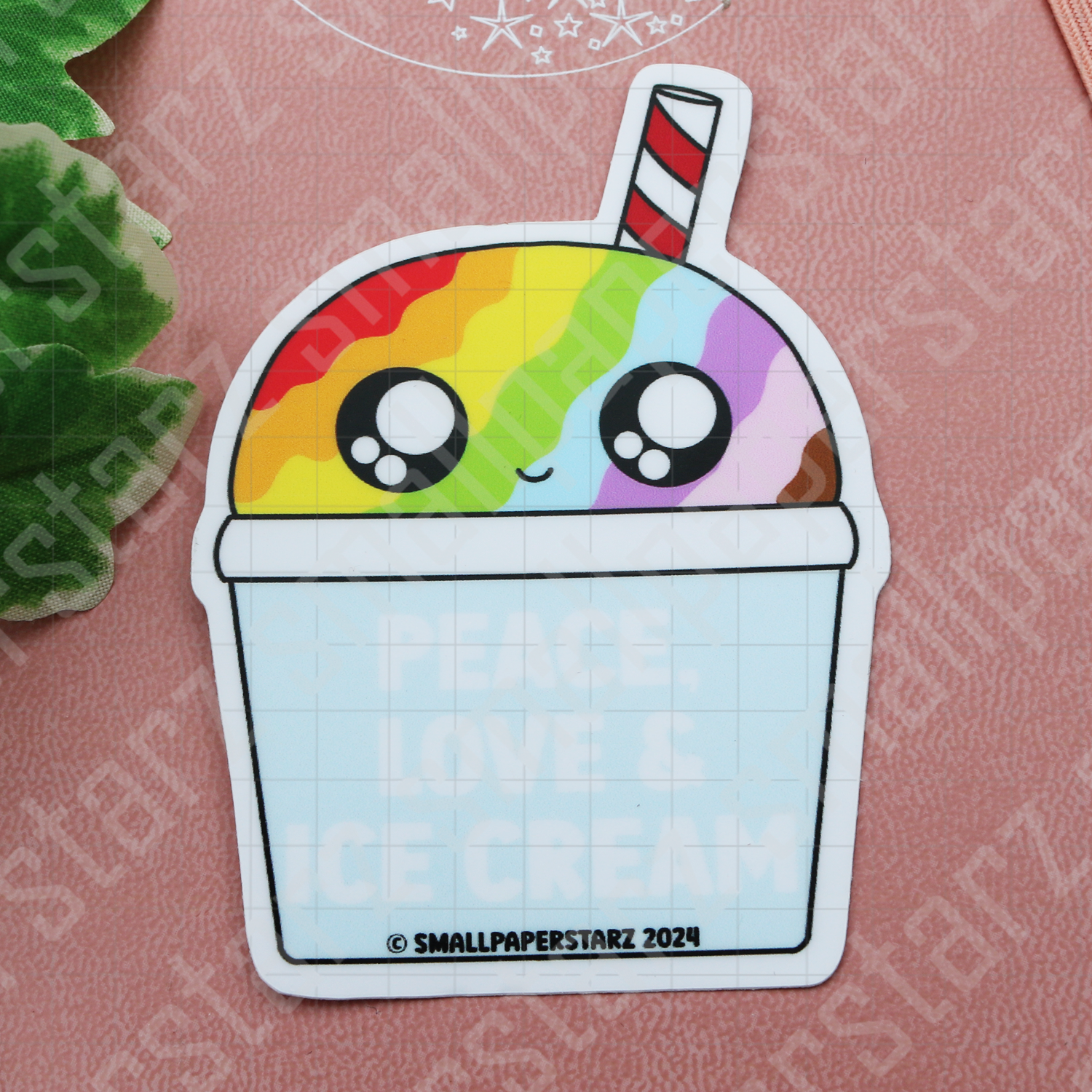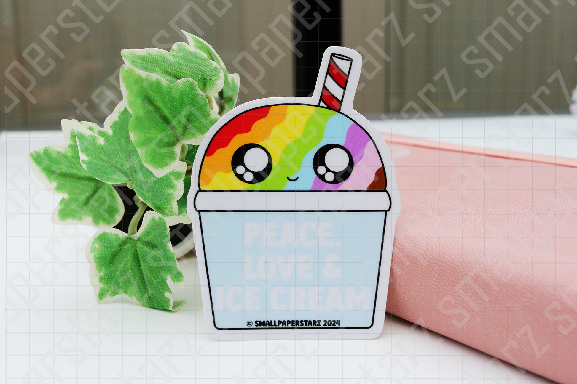 F043 - Peace, Love and Rainbow Ice Cream Waterproof Vinyl Die Cut Sticker