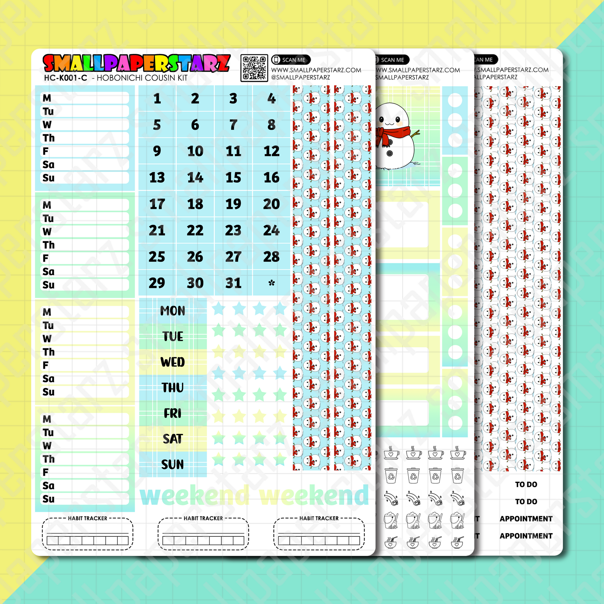 HC-K001 - Snowman's Wonderland Hobonichi Cousin Planner Sticker Kit