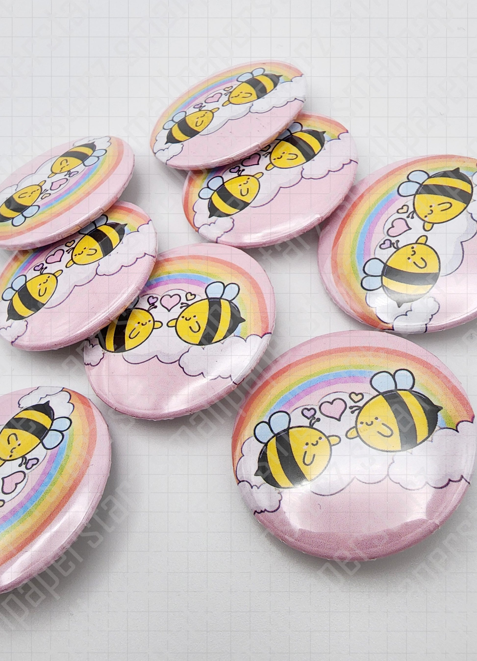 L005 - Lovely Bees Rainbow Pinback Button / Badge