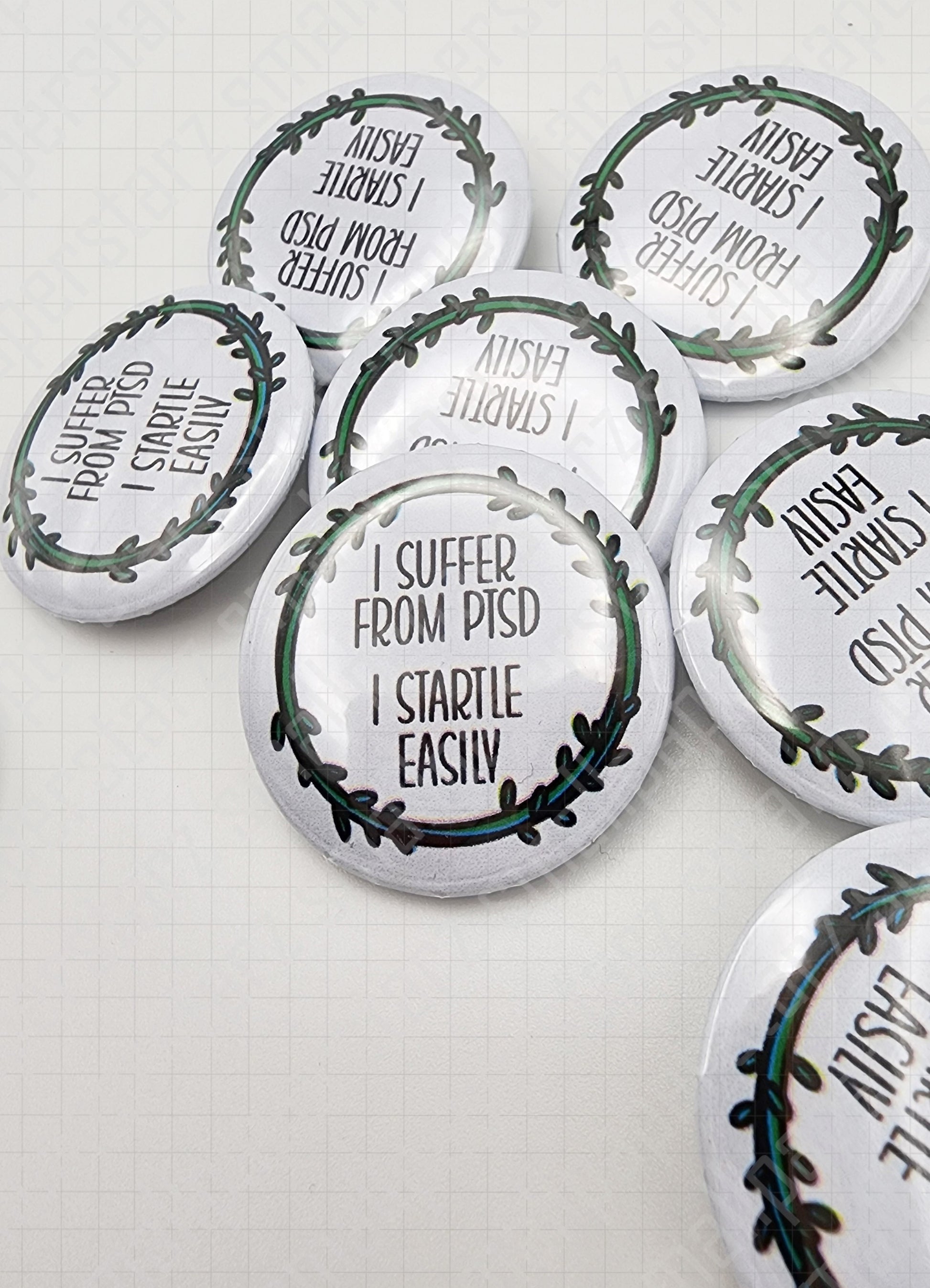 L015 - I Suffer From PTSD I Startle Easily Pinback Button / Badge