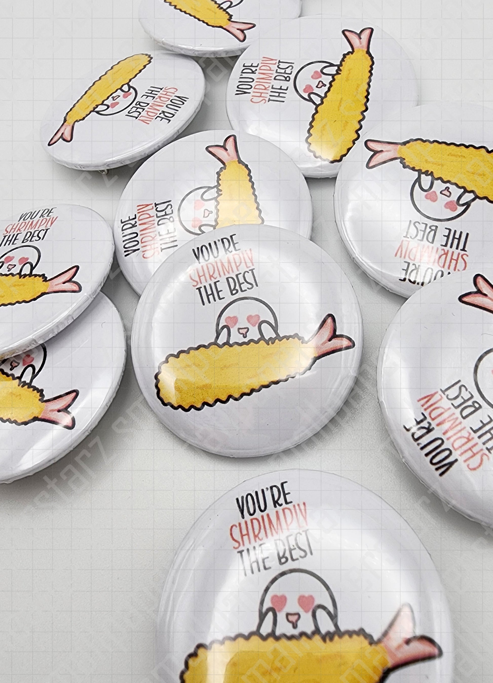 L016 - You're Shrimply The Best Punny Funny Pinback Button / Badge