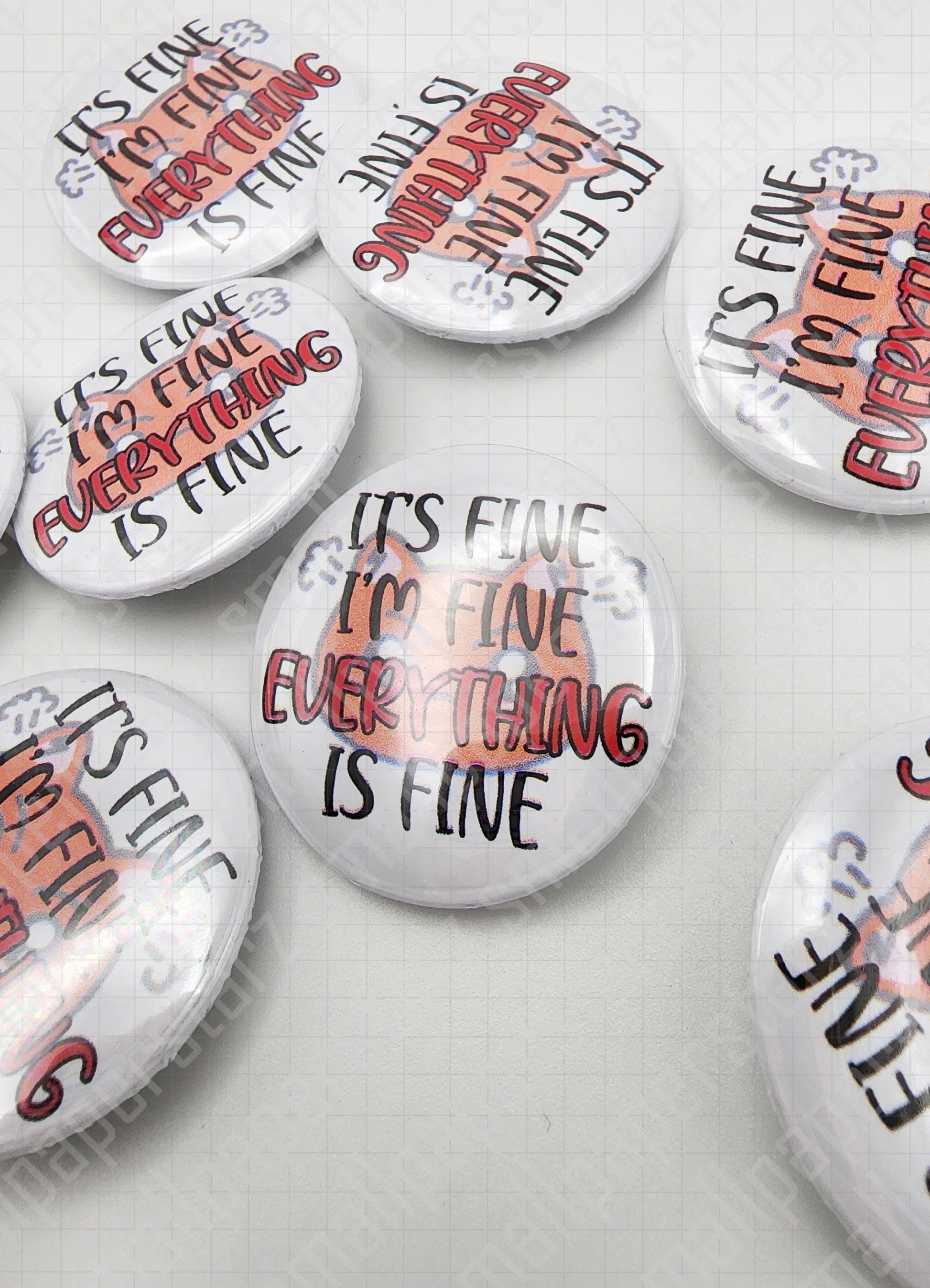 L018 - It's Fine I'm Fine Everything Is Fine Pinback Button / Badge
