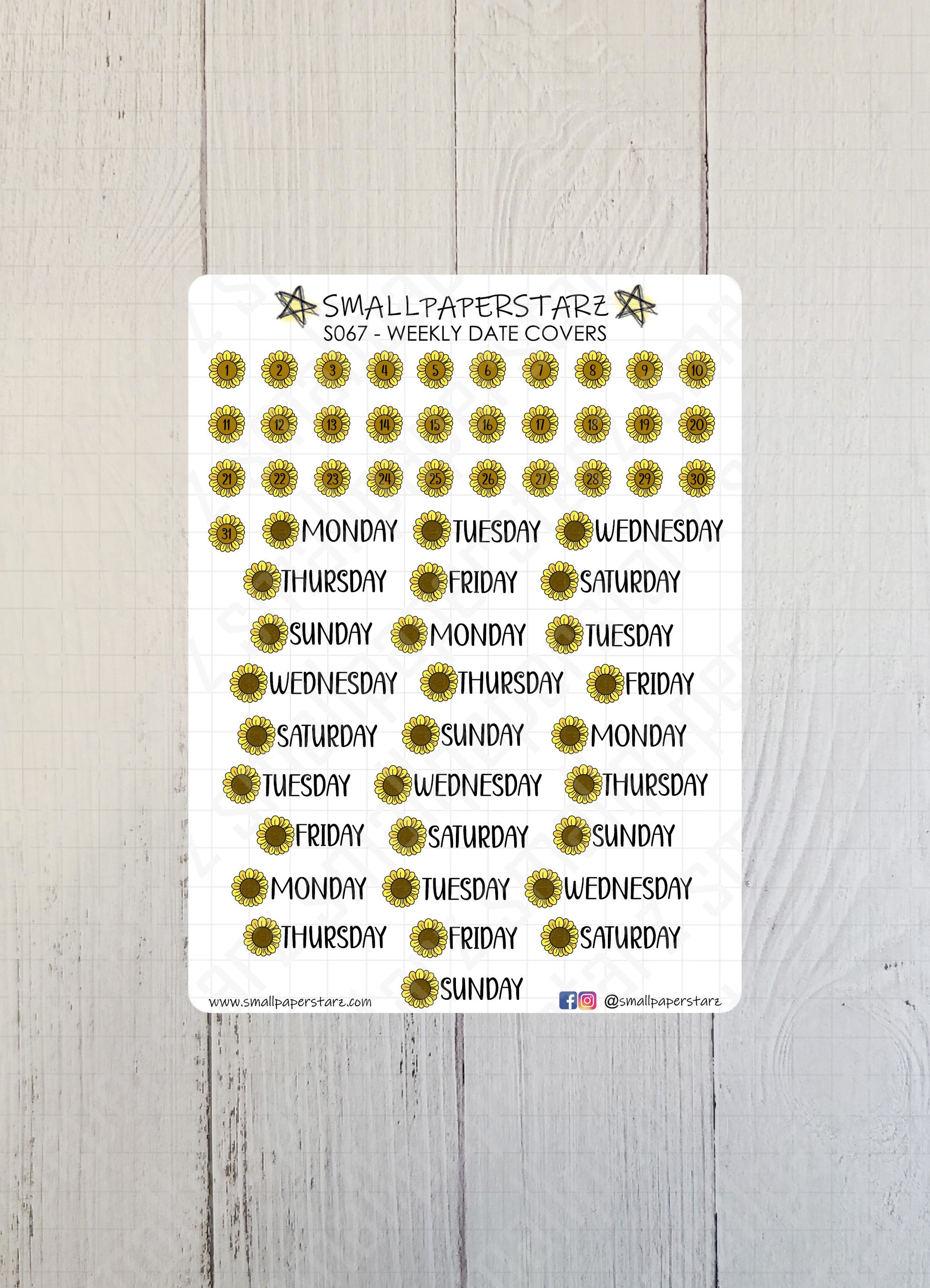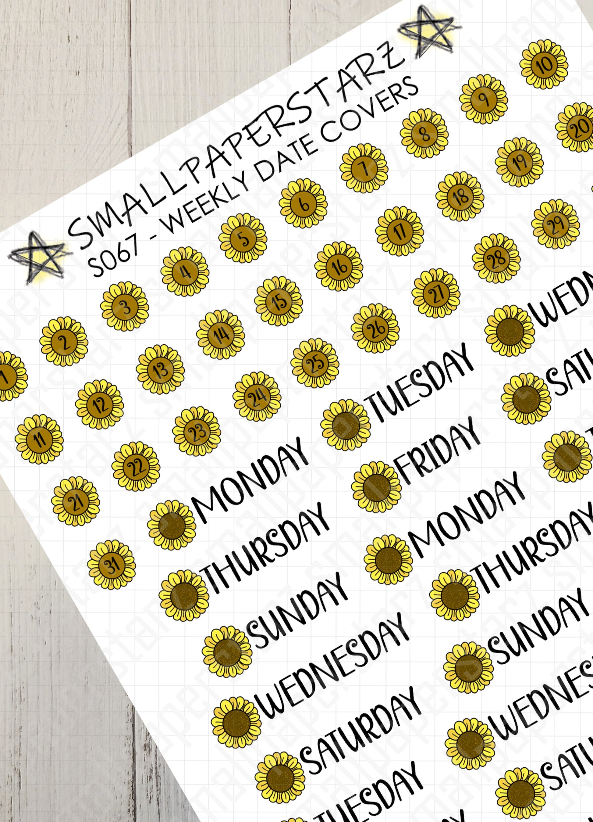 S067 - Sunflower Weekly Date Covers Sticker Sheet