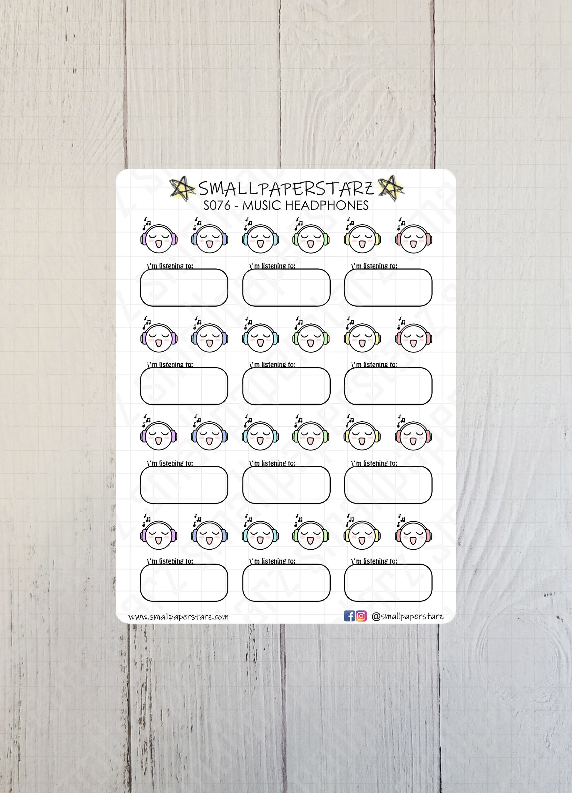 S076 - Music Headphones Sticker Sheet
