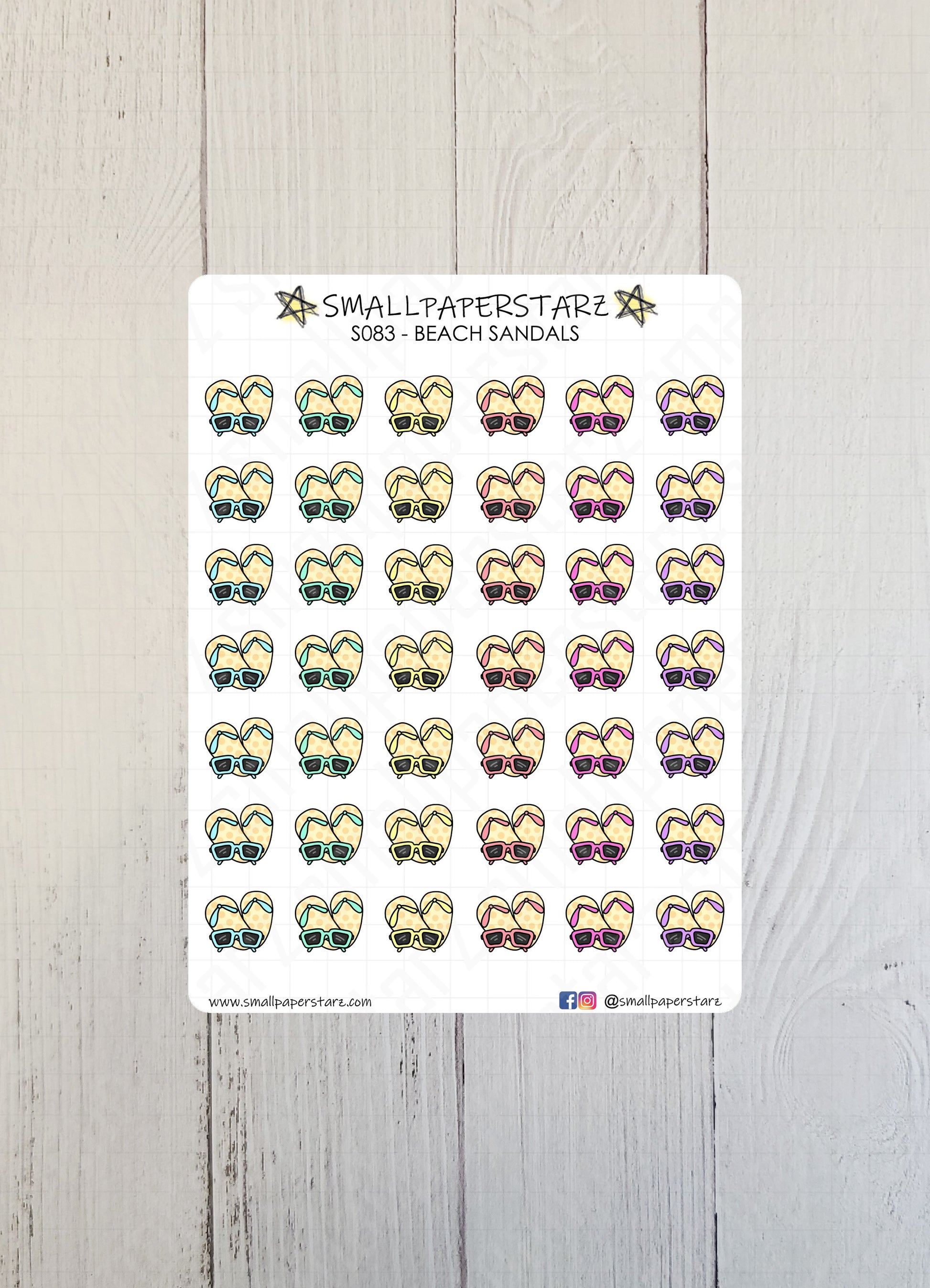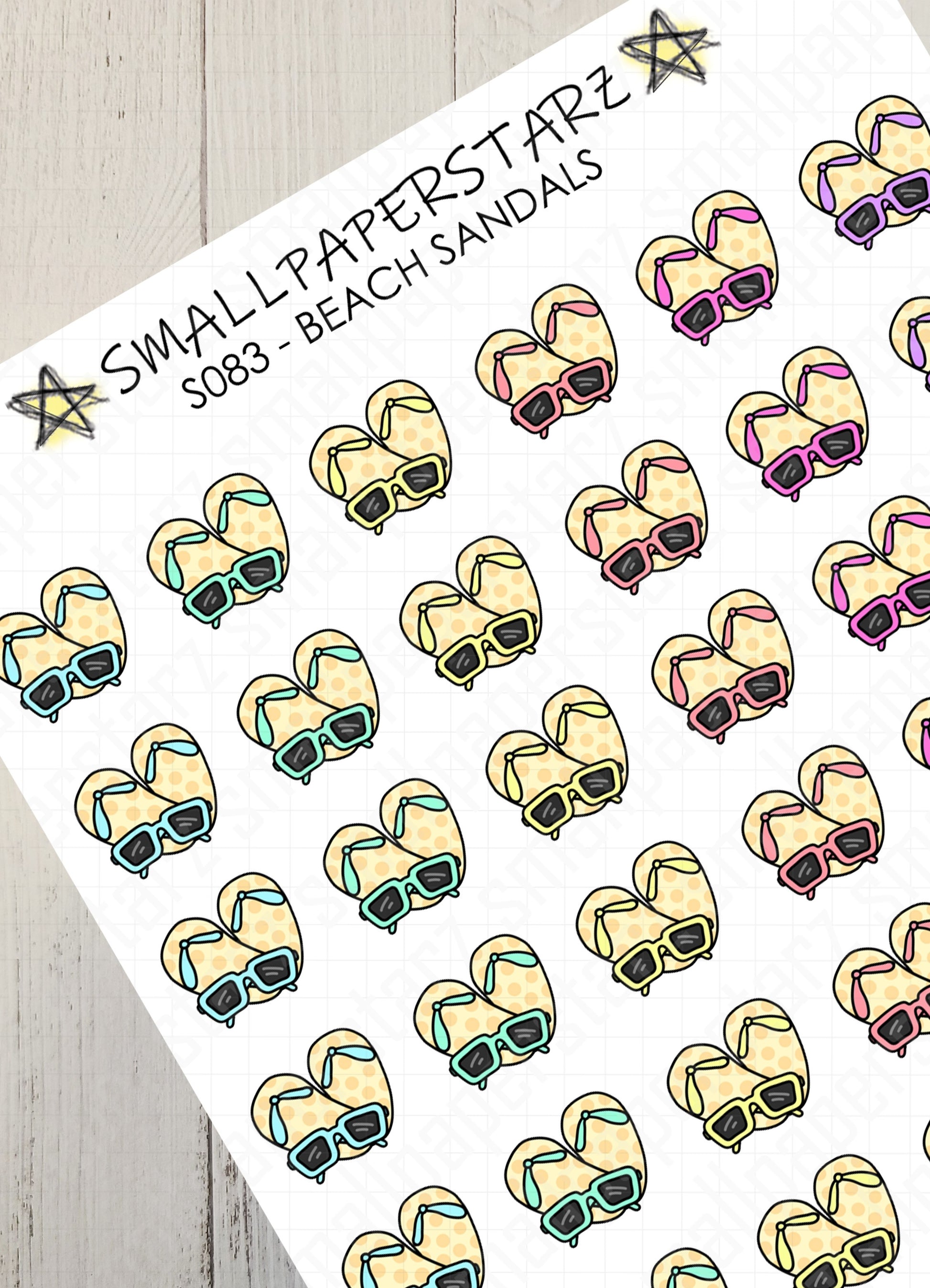 S083 - Beach Sandals & Sunglasses Sticker Sheet