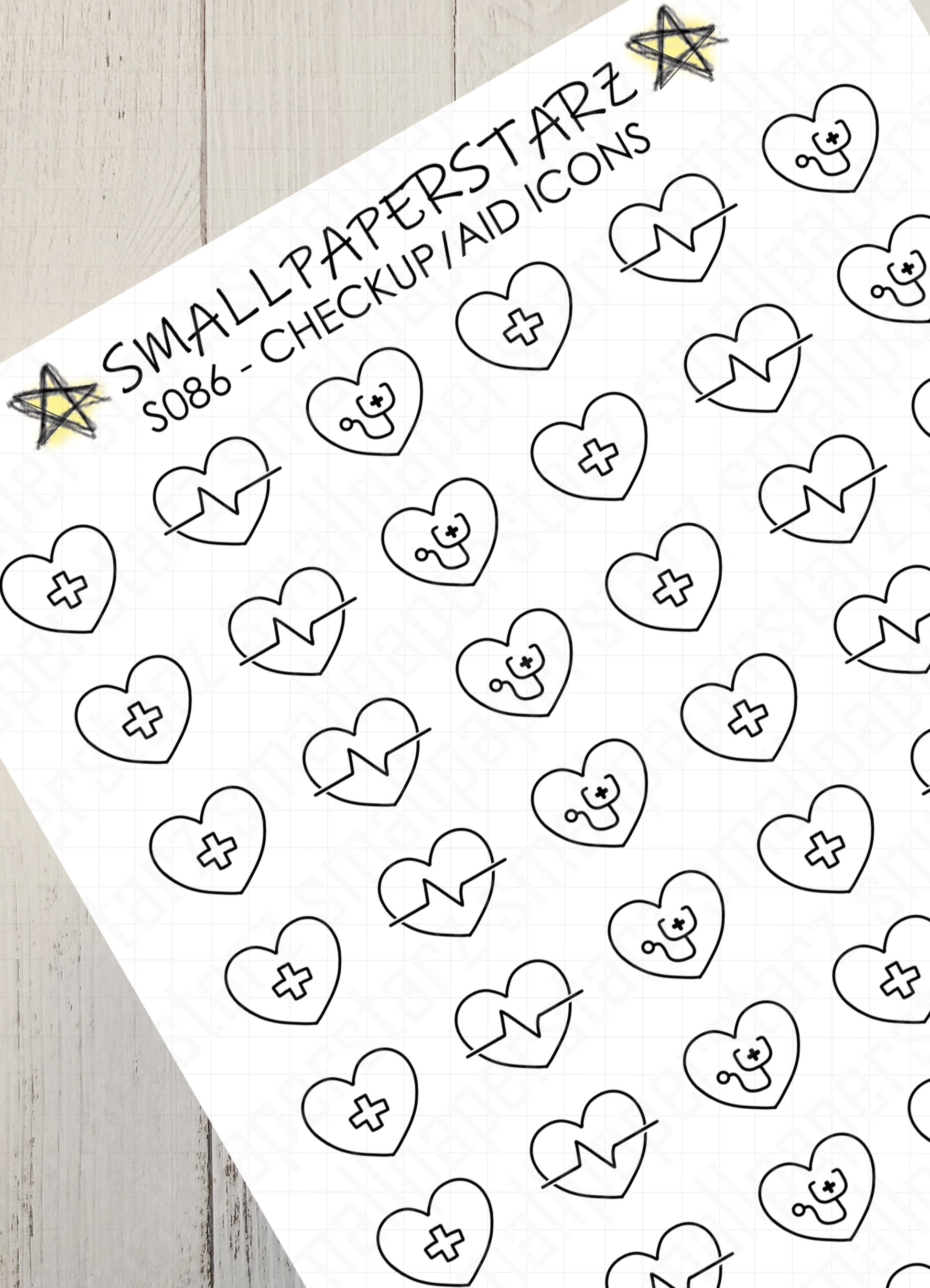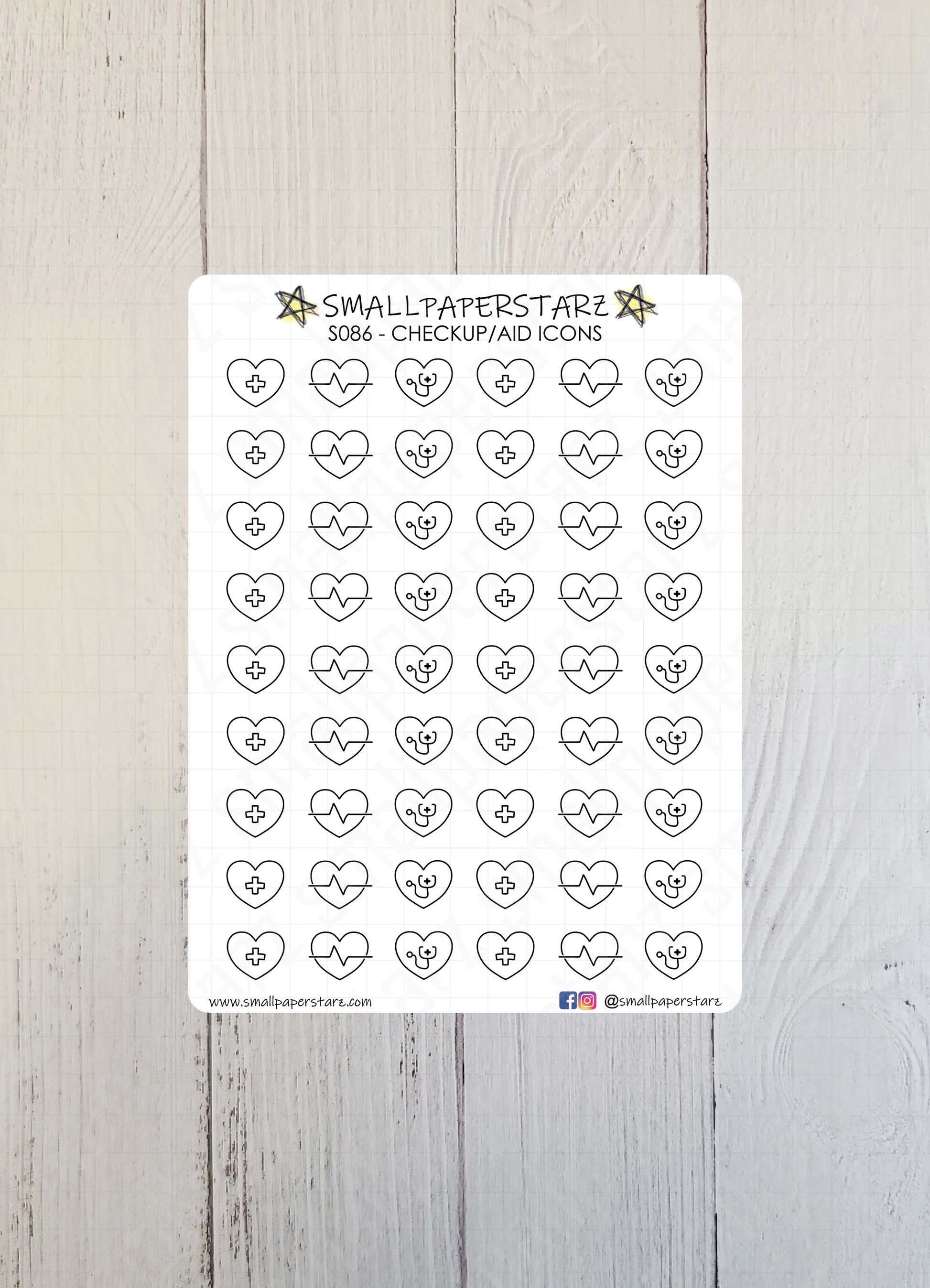 S086 - Health Heart Checkup/Aid/Treatment Icon Doodles Sticker Sheet