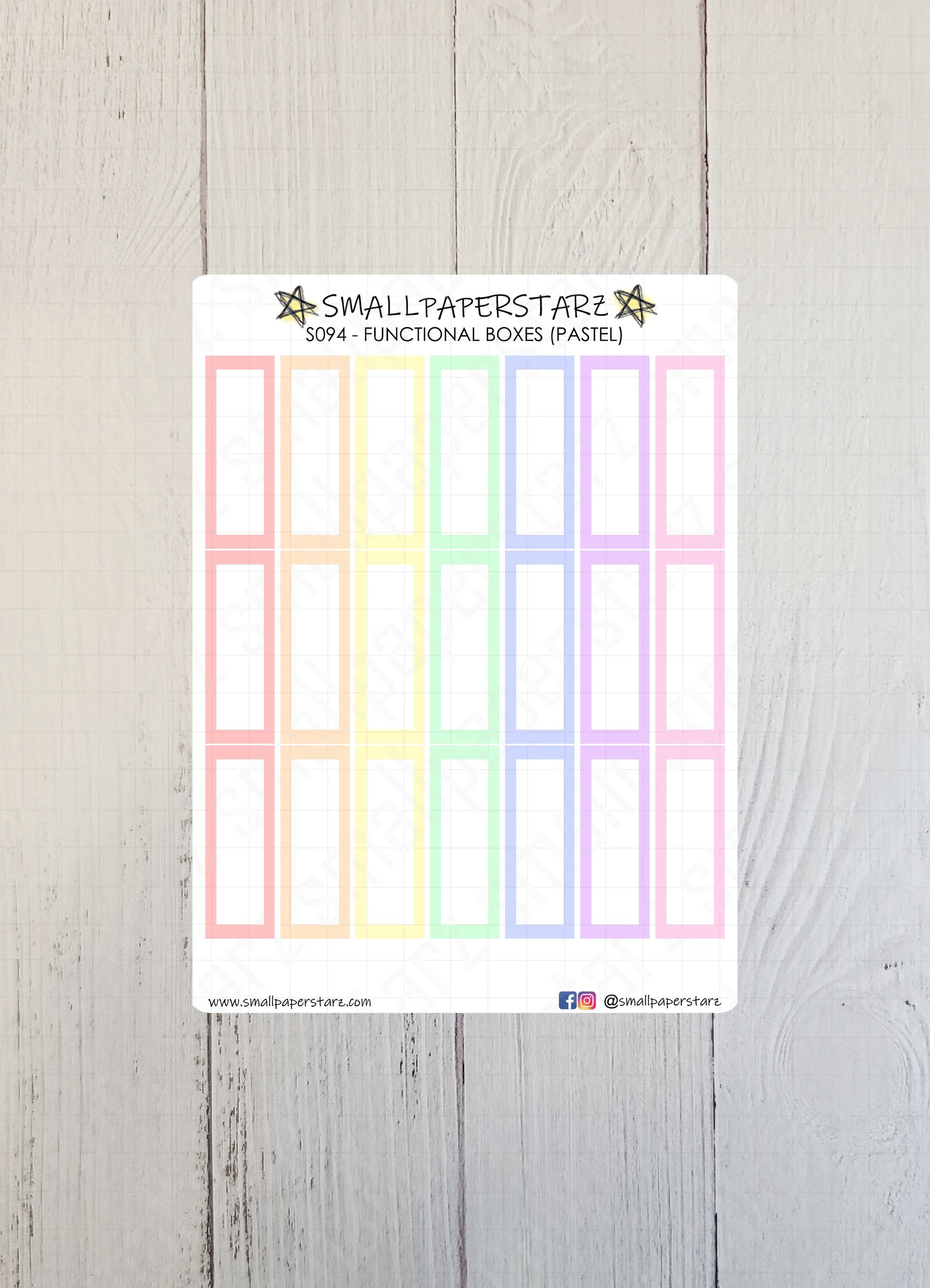 Cute functional planner boxes in pastel colours. Designed to fit in The Simple Elephant planner, and bullet journals. Each box is 1.5 x 0.5 inches.