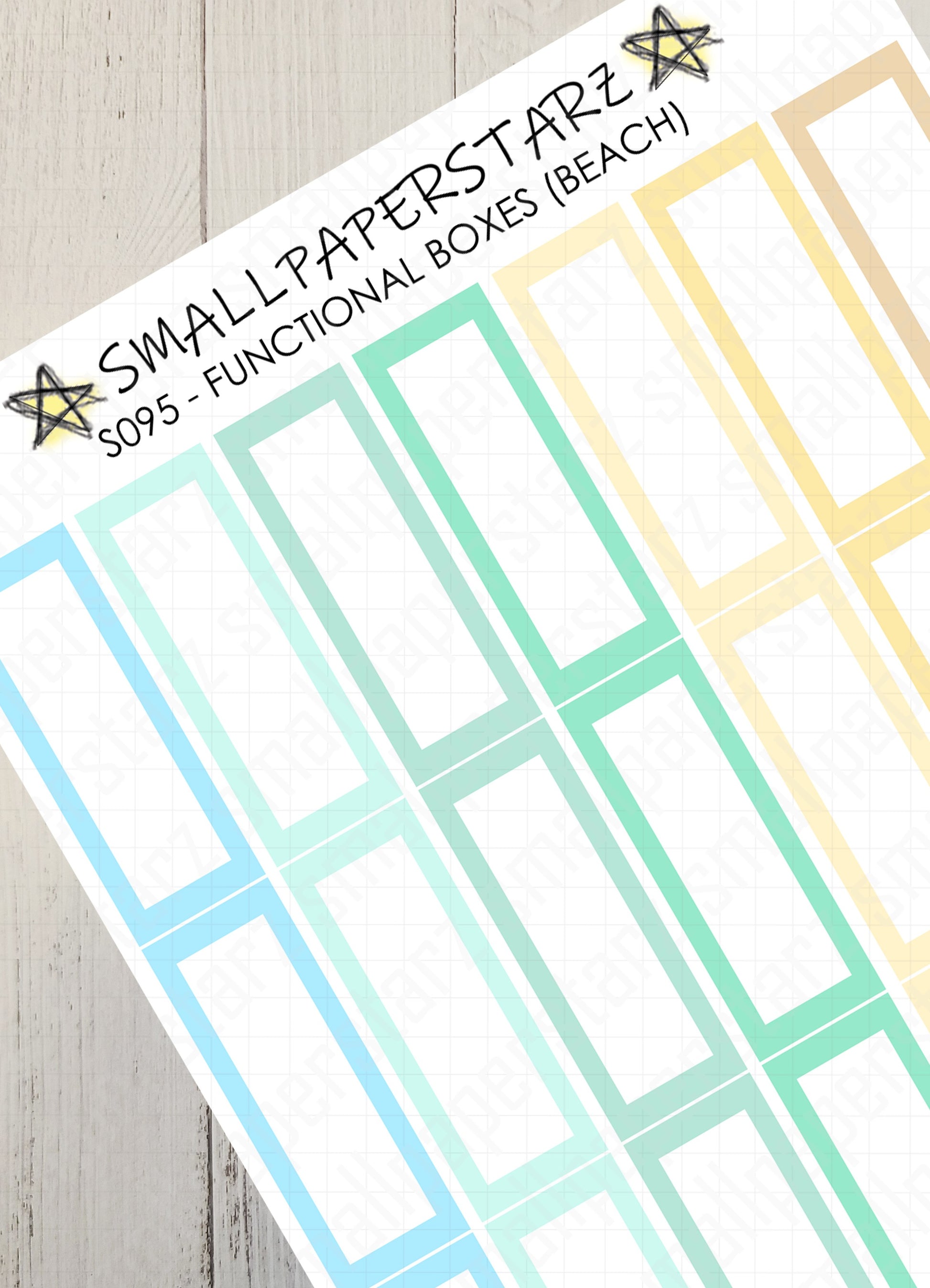 Cute functional planner boxes in beach themed colours. Designed to fit in The Simple Elephant planner, and bullet journals. Each box is 1.5 x 0.5 inches.