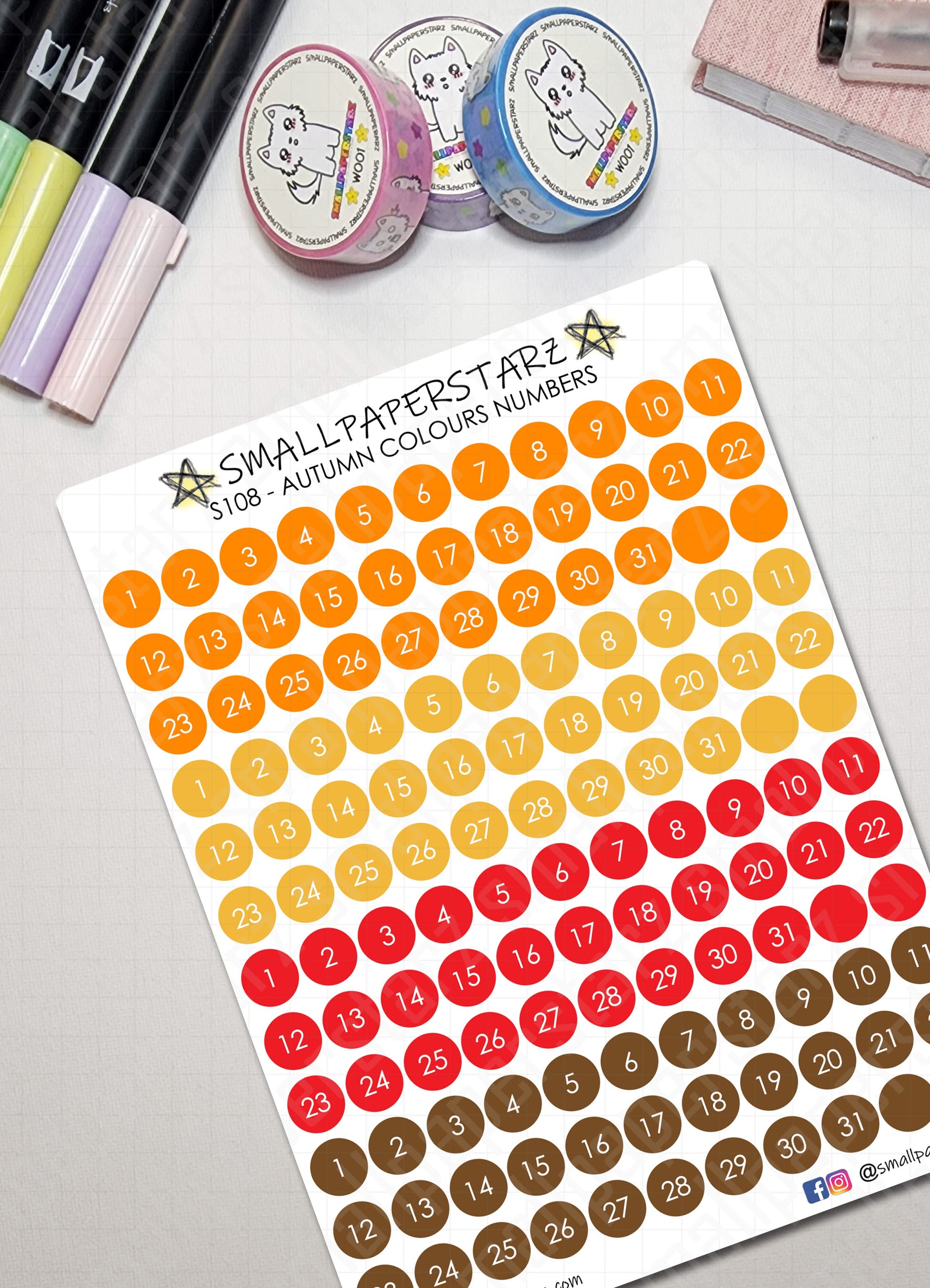 Autumn colours number date covers to help decorate your planner / bullet journal / bujo spreads! :)