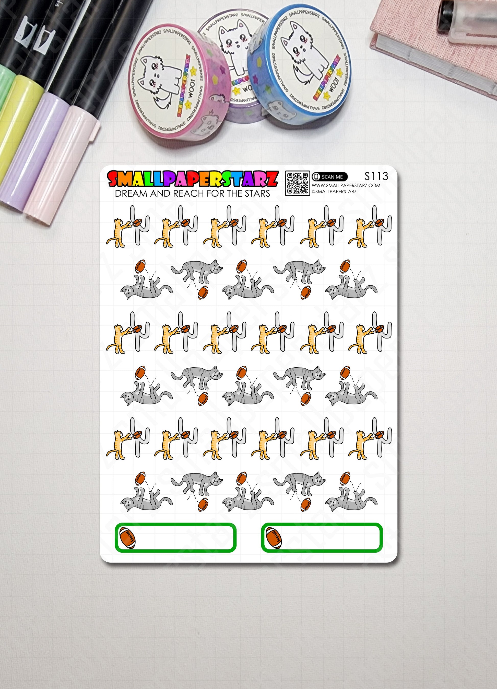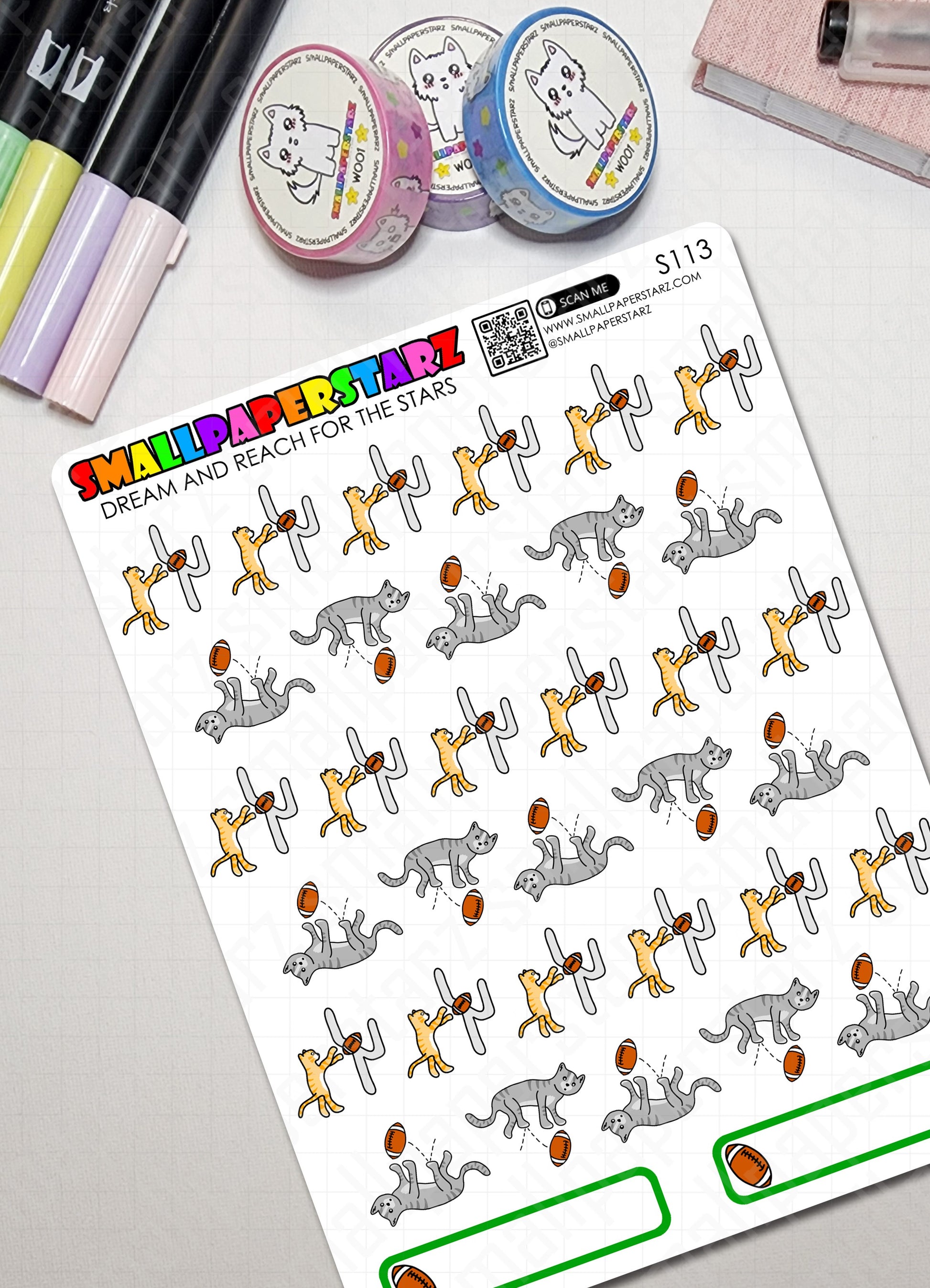 S113 - Cat's / Kitty's Playing Football Sticker Sheet