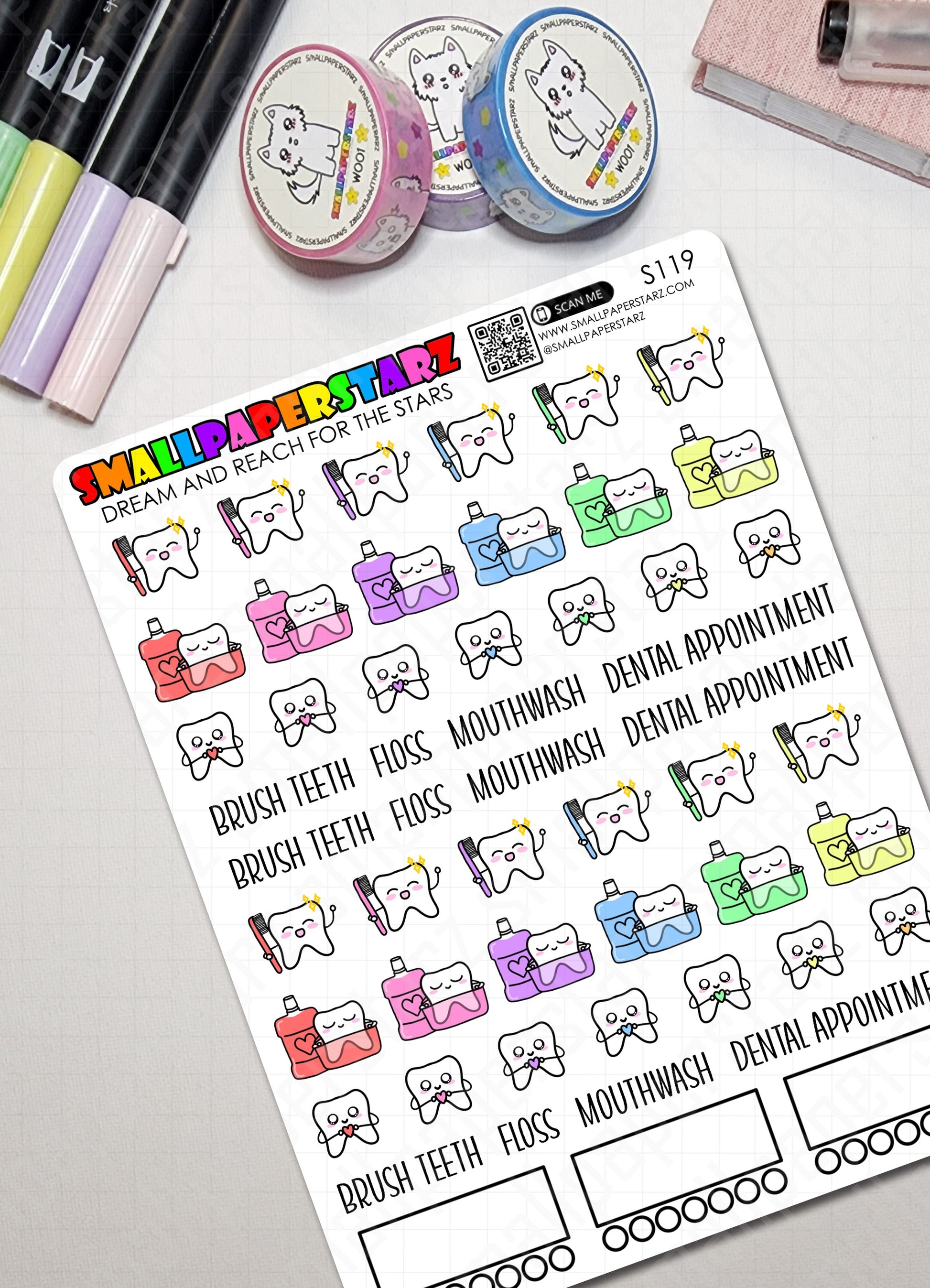 S119 - Dental Care / Brush Teeth / Dental Hygiene Sticker Sheet
