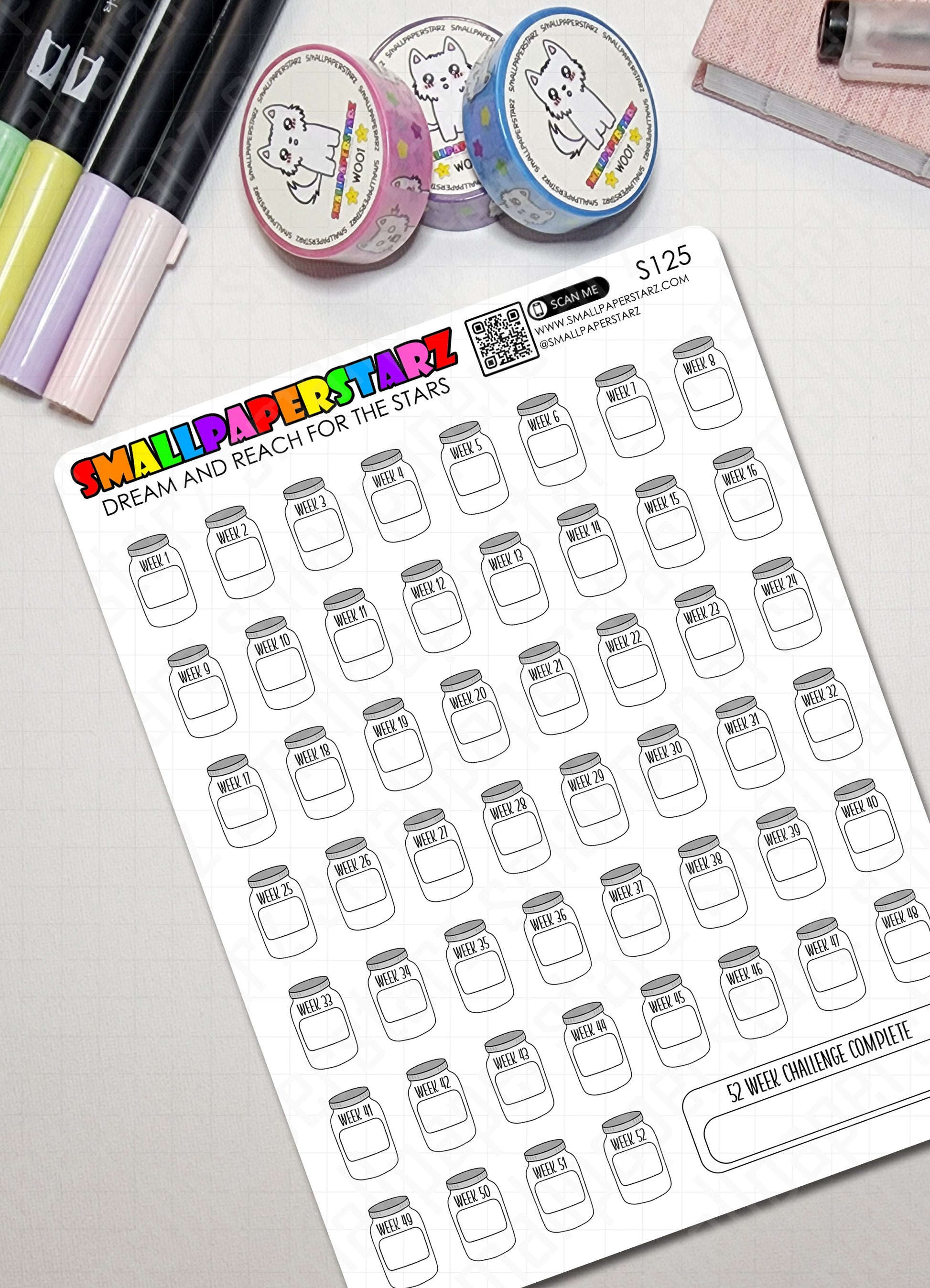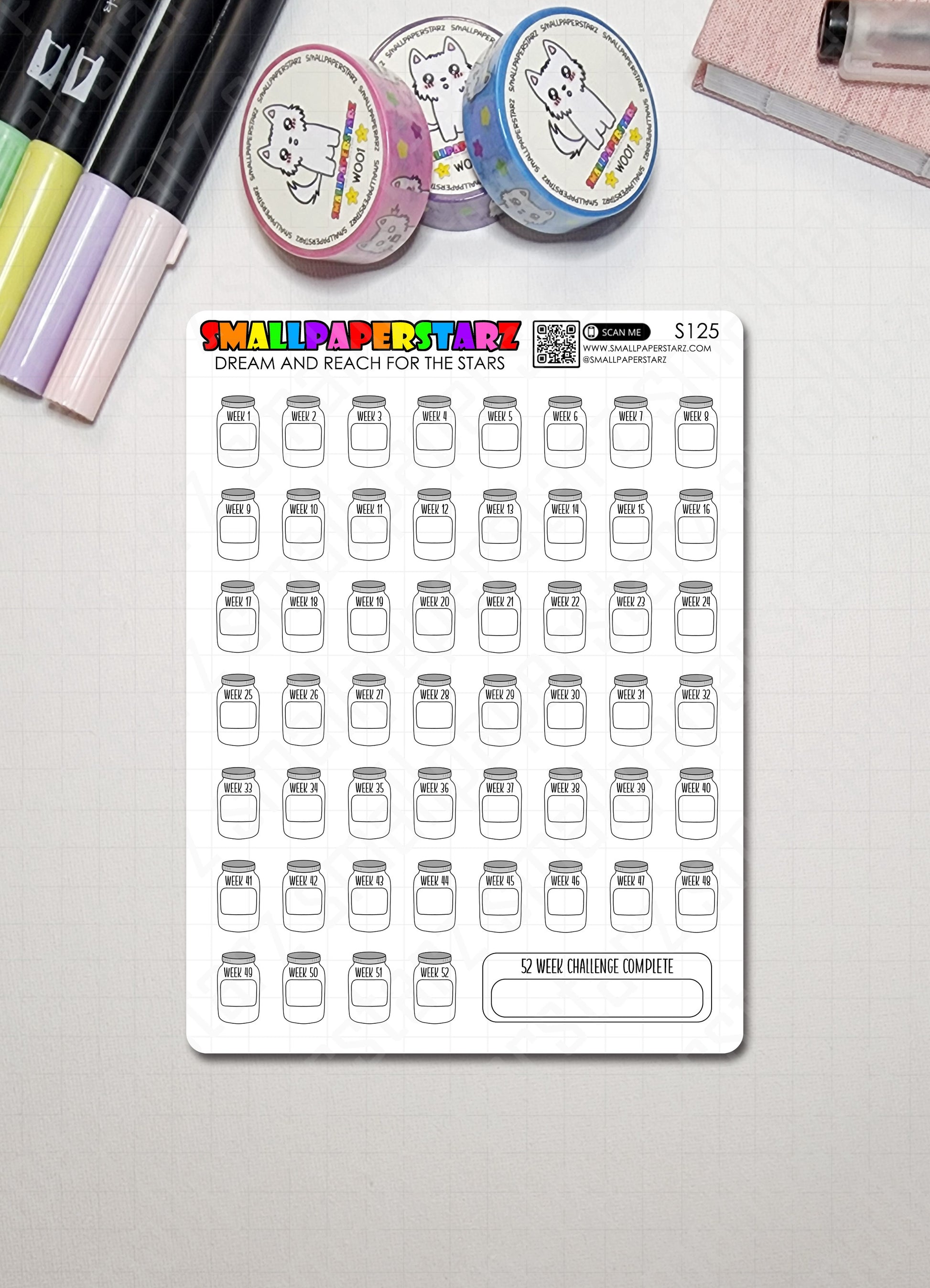 S125 - 52 Week Money / Savings Challenge Jars White Sticker Sheet
