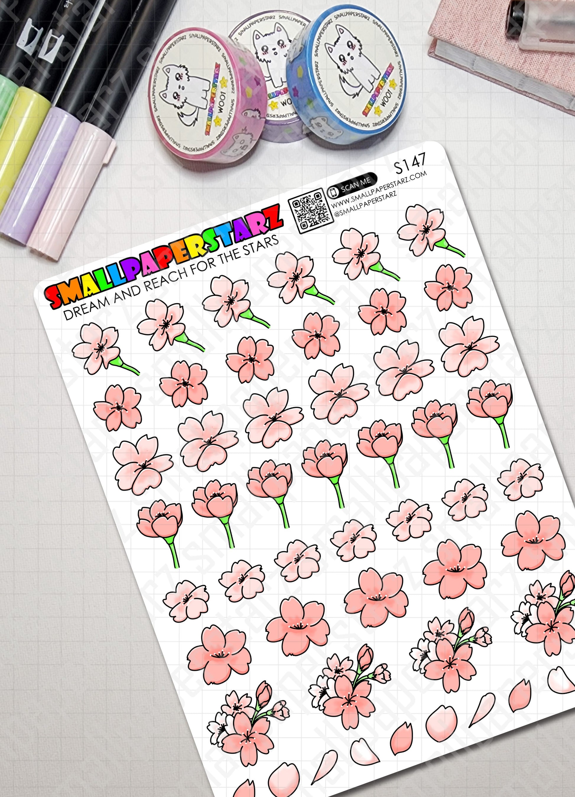 S147 - Cherry Blossoms / Sakura Flower Sticker Sheet