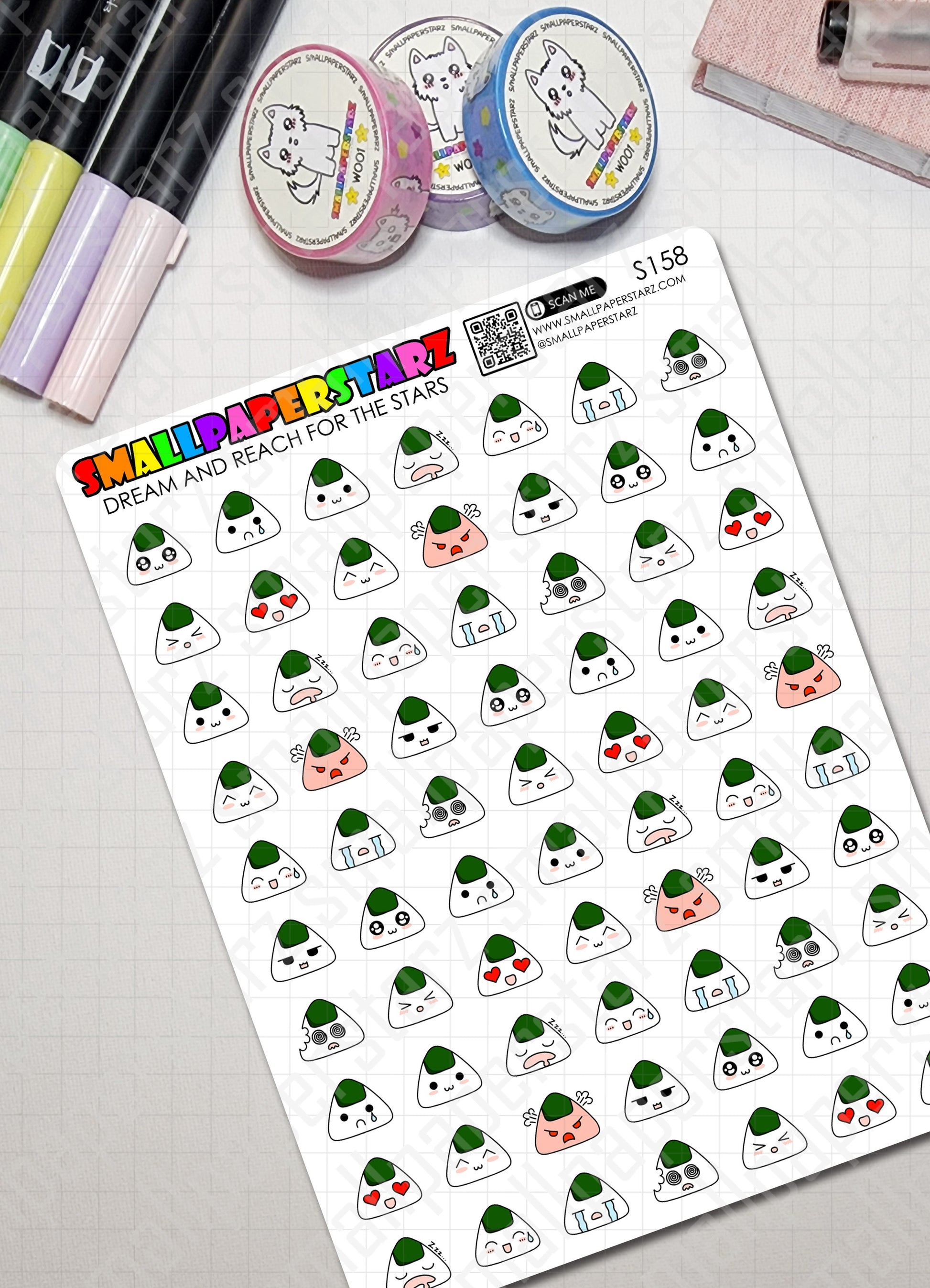 S158 - Onigiri Emojis / Emotis / Emoticons Sticker Sheet