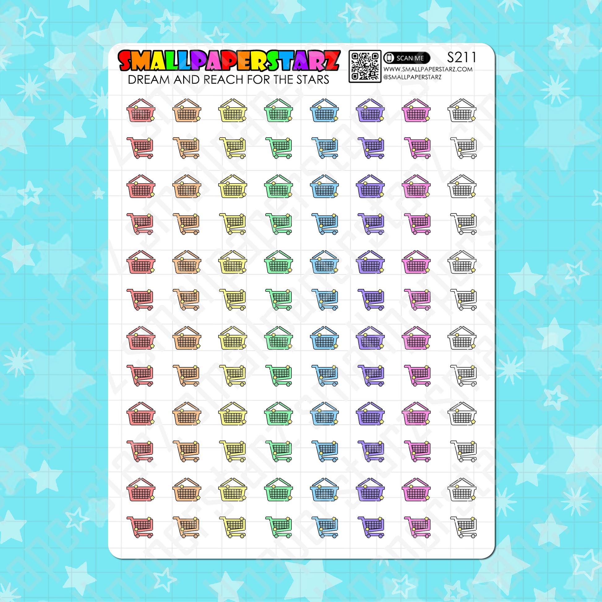 S211 - Shopping Basket / Cart Rainbow Icons Sticker Sheet